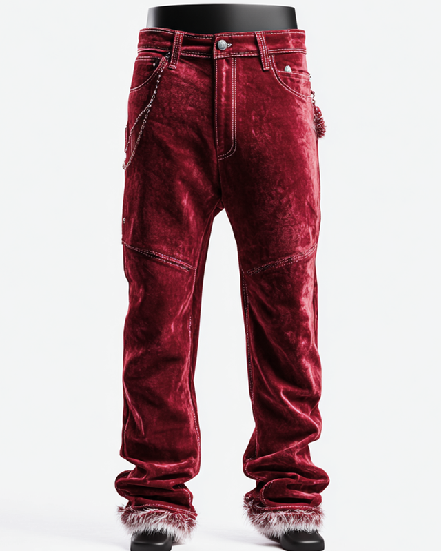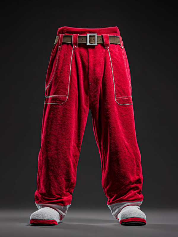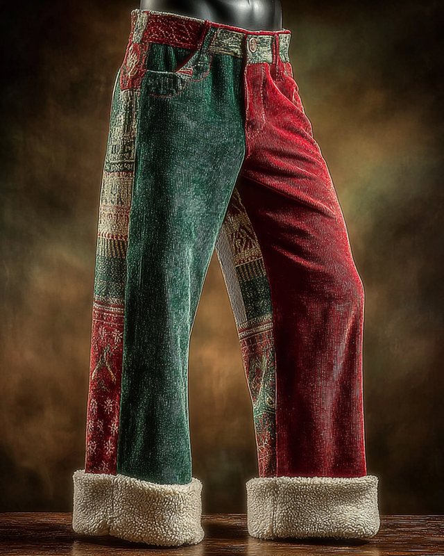 Men's Santa Claus Color Block Cosplay Plush Casual Pants