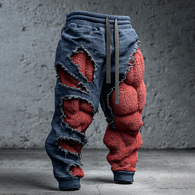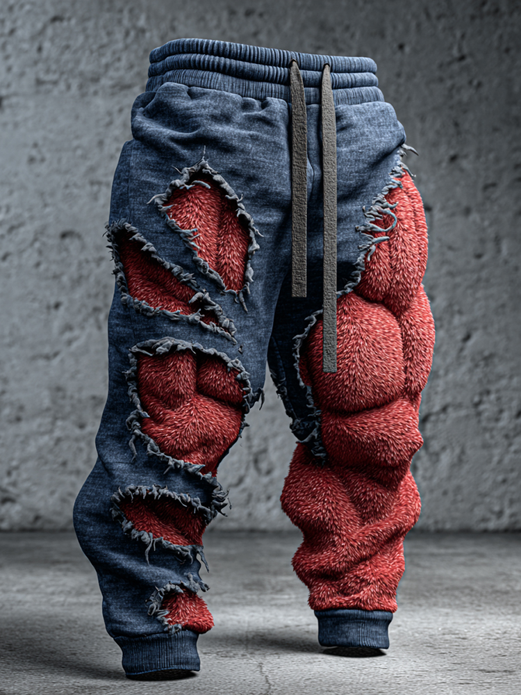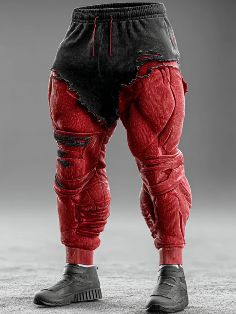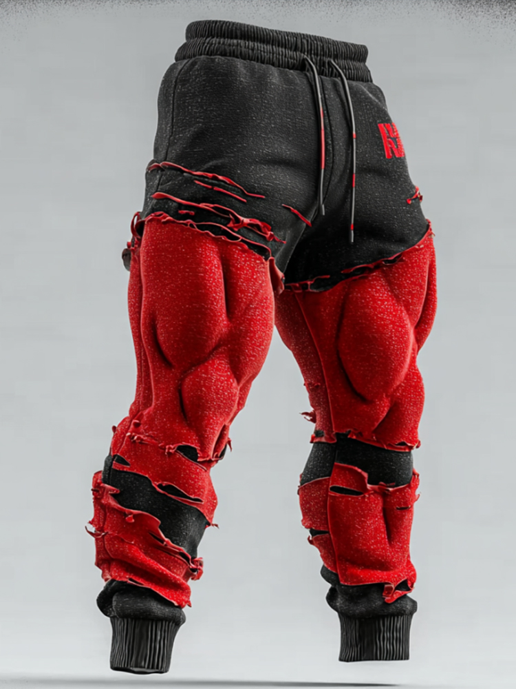 Men's Muscle Line Art Contrast Distressed Sweatpants