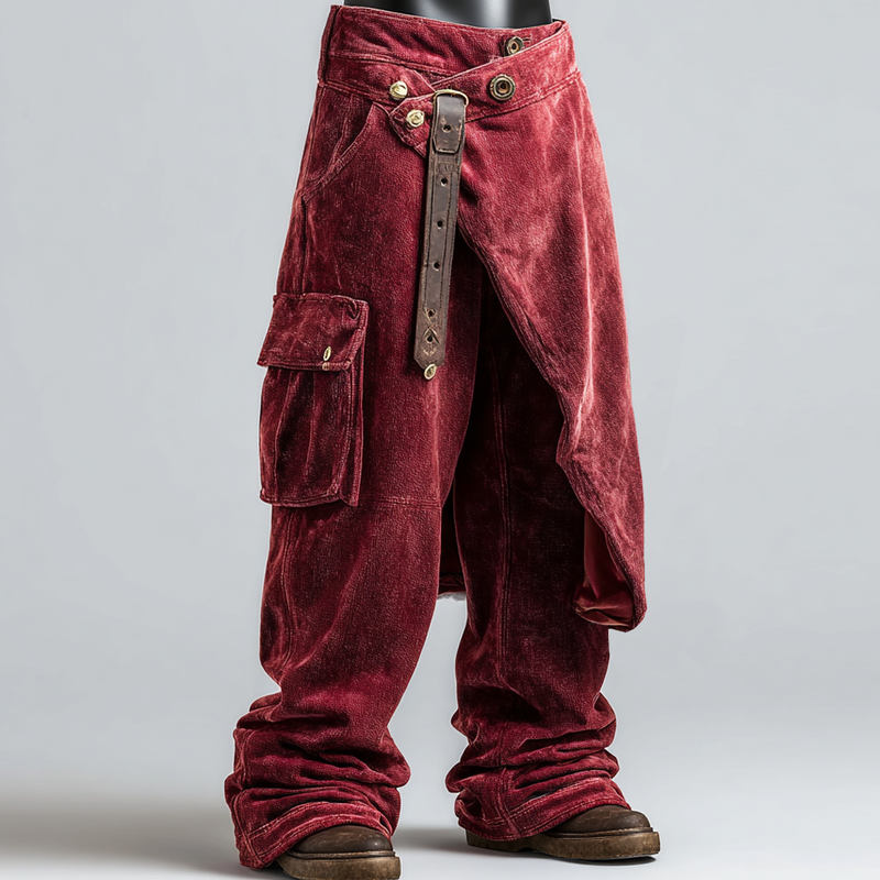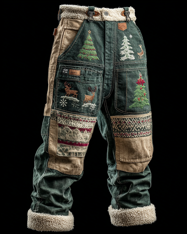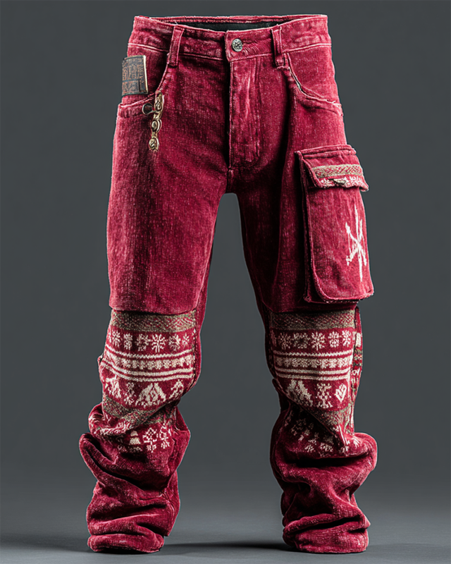 Men's Vintage Patchwork Line Art Knitted Cozy Pants