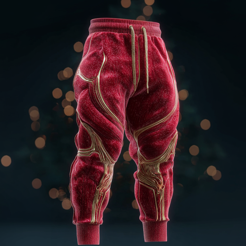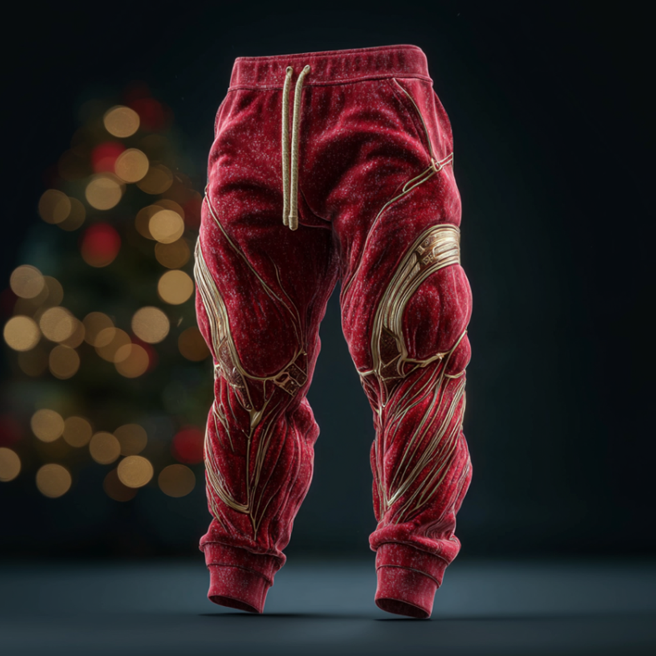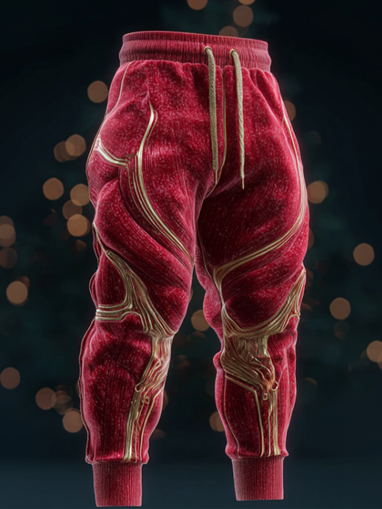 Men's Christmas Muscle Gold Line Art Leisure Thick-lined Pants