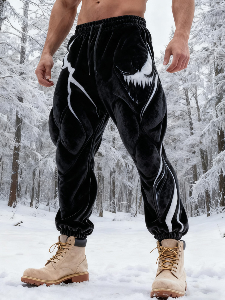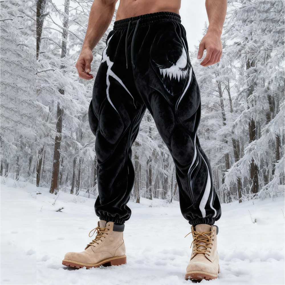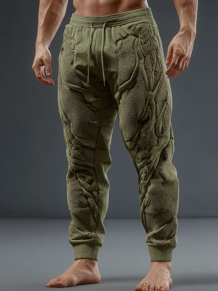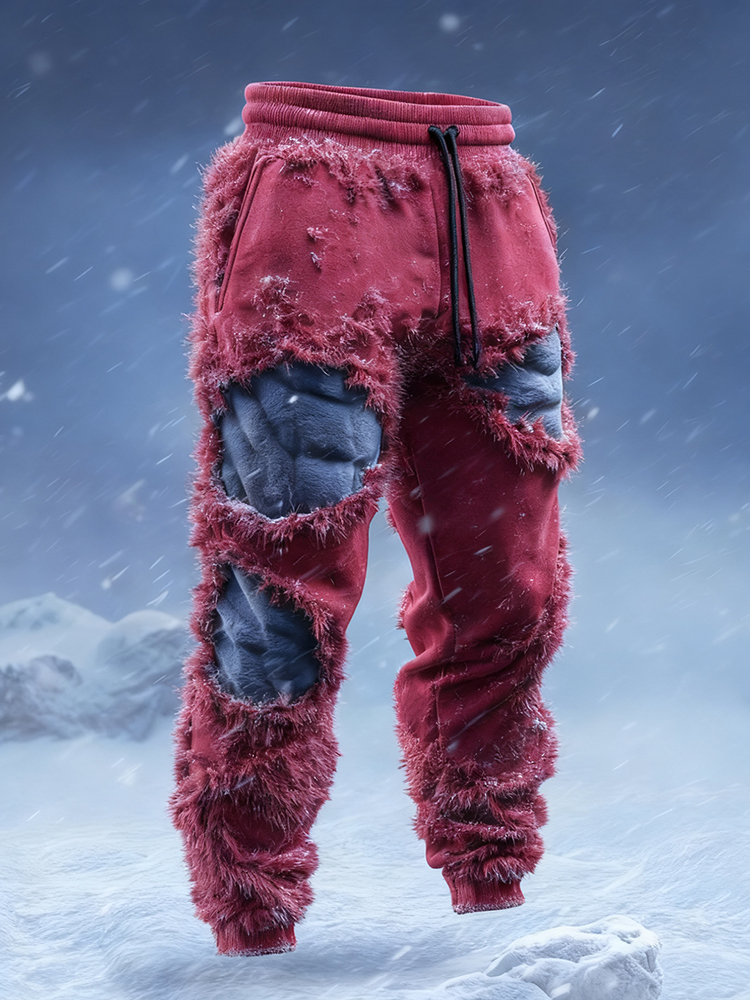 Men's Muscle Line Art Flannel Distressed Warm Pants