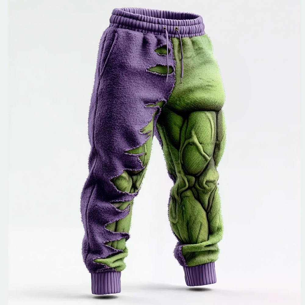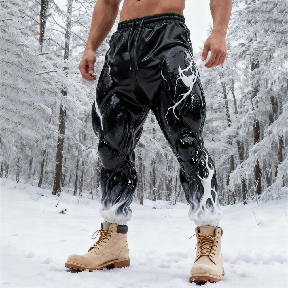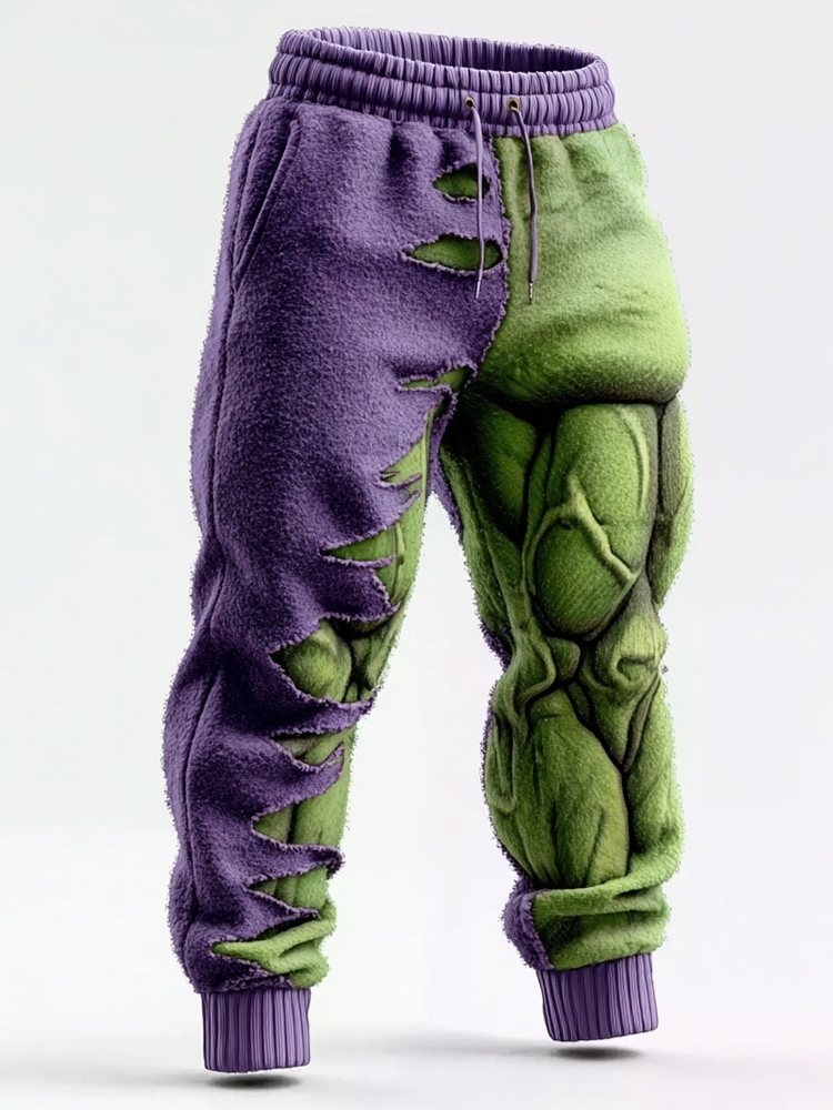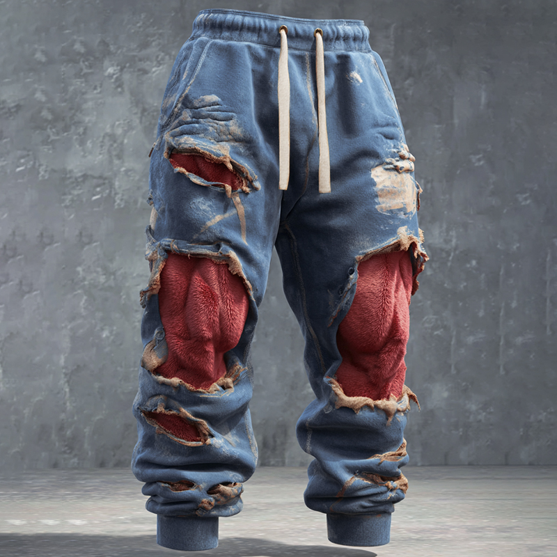 Men's Muscle Line Art Flannel Distressed Warm Pants
