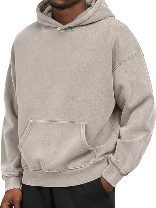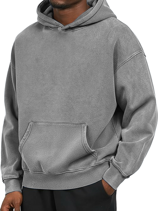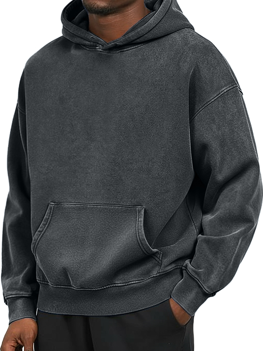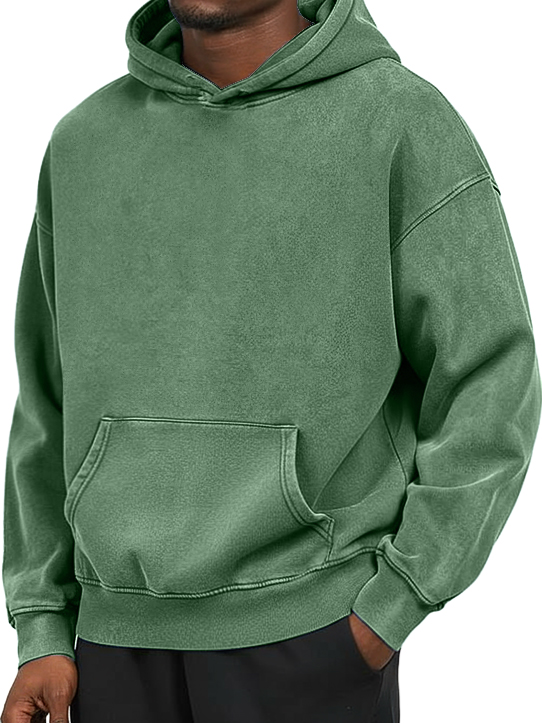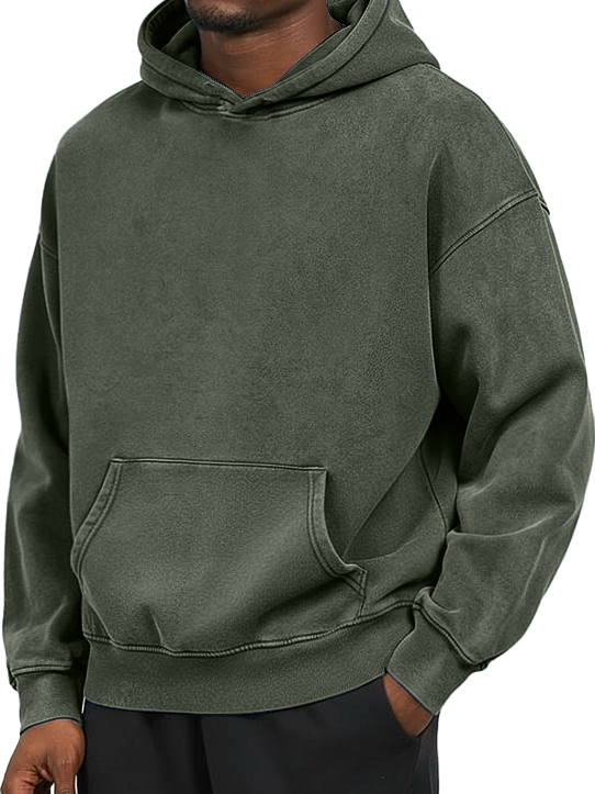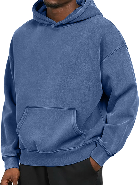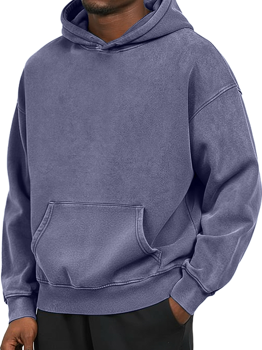 Men's 100% Cotton Washed And Distressed Vintage Casual Pocket Hooded Sweatshirt