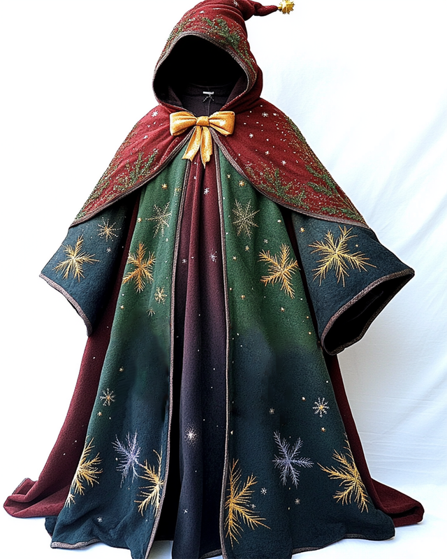 Christmas themed snowflake embroidery contrast color stitching hooded cape 8726
