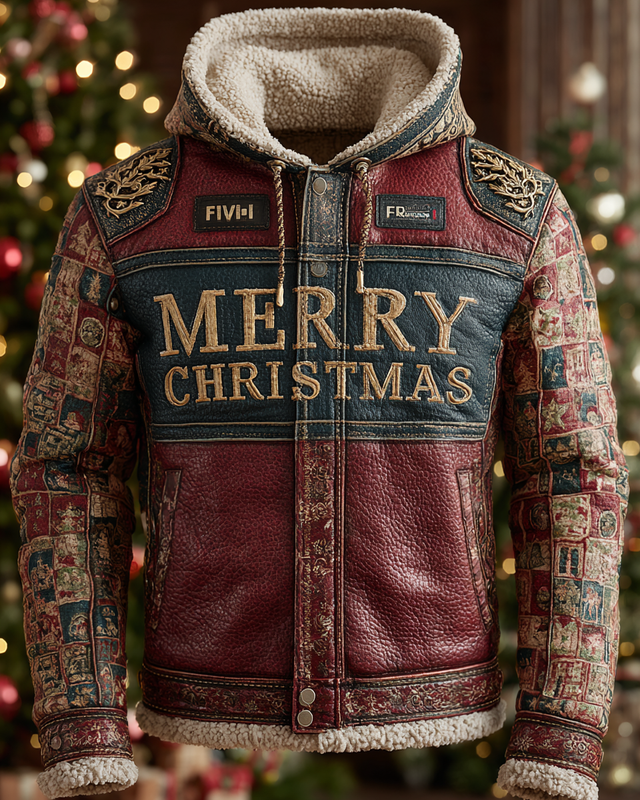 Men's Christmas Winter Fashionable Warm Fur Collar Leather Coat 9491