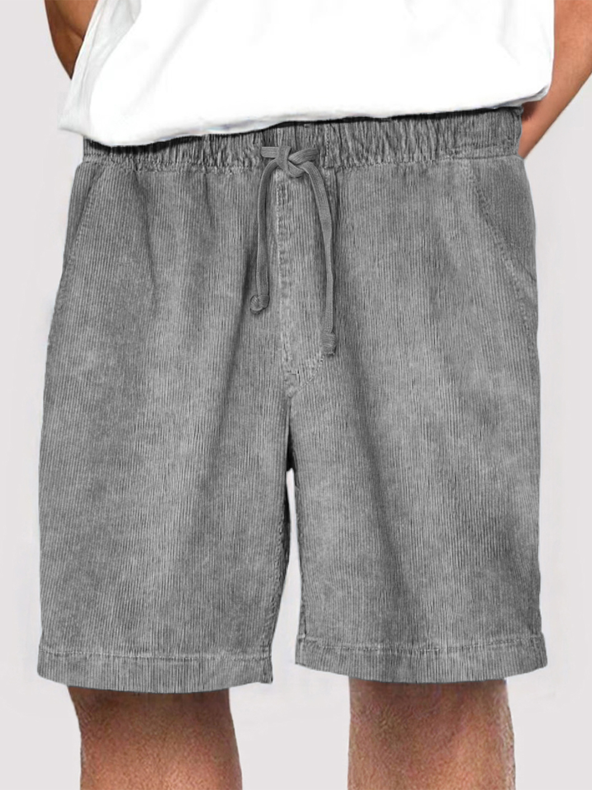 Men's Fashion Corduroy Casual Everyday Elastic Waist Drawstring Shorts With Side Pockets