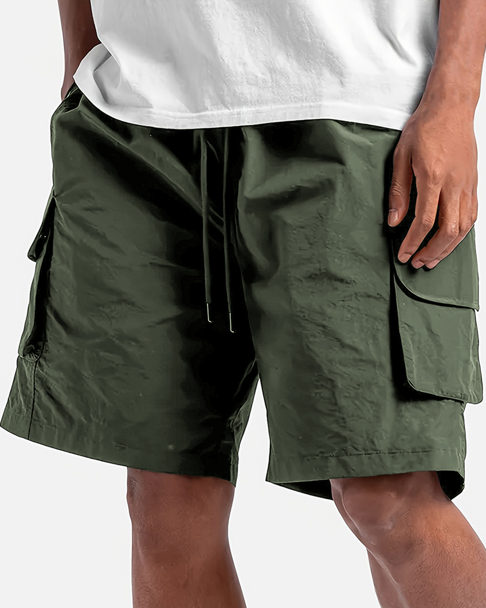 Men's Quick-drying Practical Multi-pocket Cargo Shorts Lace-up Casual Loose Shorts