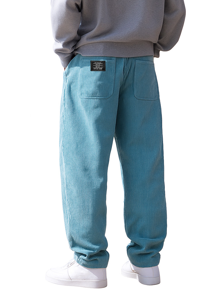 Men's Stylish Everyday Corduroy Fabric Pocket Loose Drawstring Elastic Waist Embroidered Logo Trousers