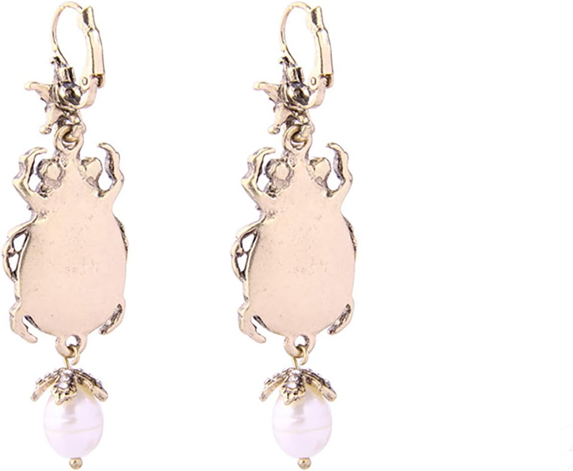 Elevate your style with these stunning Vintage Beetle Bug Drop Dangle Earrings, measuring 2.70 inches in length. Crafted with a unique scarab design, these earrings feature an eye-catching abalone shell and gold-tone metal, making them true statement pieces for any occasion.